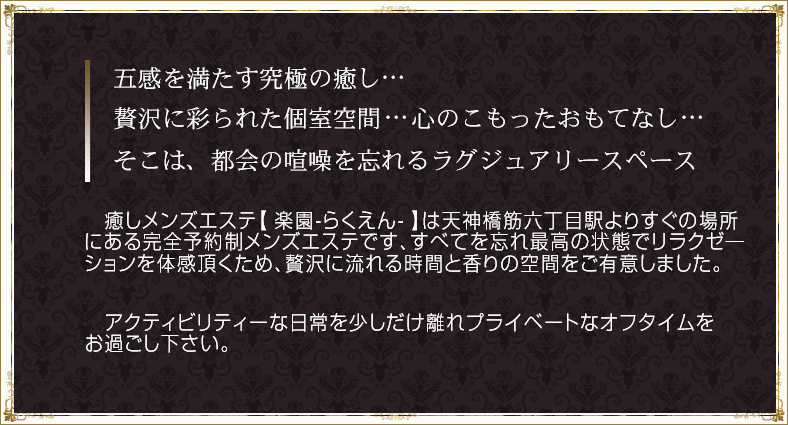 天神橋筋六丁目の高級マッサージ 「楽園-らくえん-」